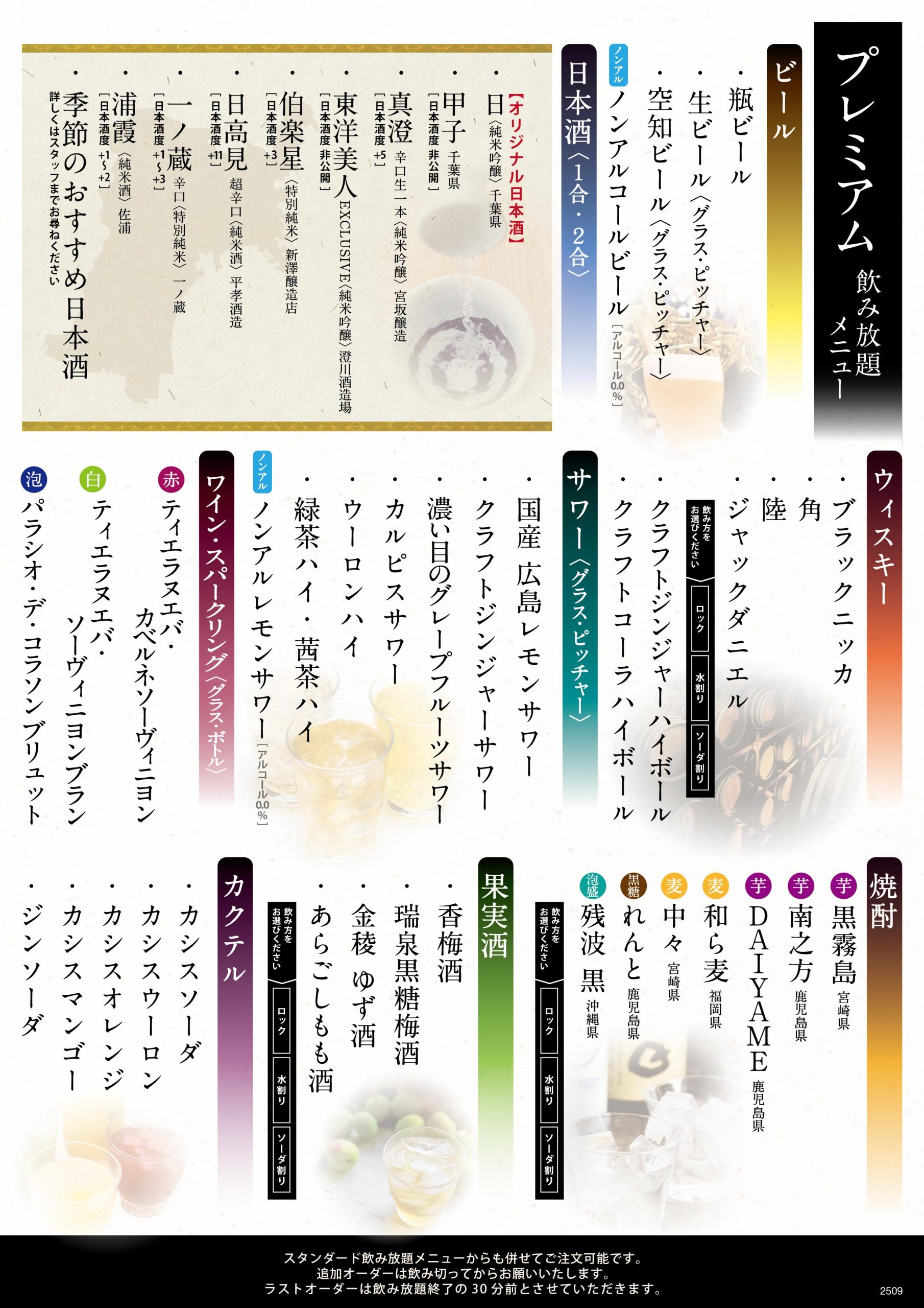 飲み放題プラン【プレミアム】お料理料金+2,300円